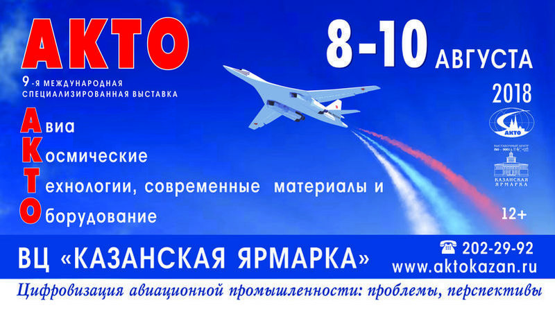 From August 8 to 10, the Kazanskaya Yarmarka Exhibition Centre will host the 9th International Specialised Exhibition “Aerospace Technologies, Advanced Materials, and Equipment” (AKTO 2018) held biannually since 2002. The Exhibition organisers are the Tatarstan Cabinet of Ministers, the Tatarstan Ministry of Industry and Trade, the Kazan City Administration, OAO Aviasalon (Moscow), the Kazanskaya Yarmarka and the Union of Aviation Industrialists of Russia, with the support from Tatarstan President Rustam Minnikhanov.