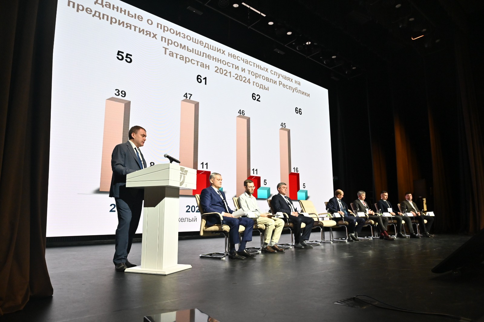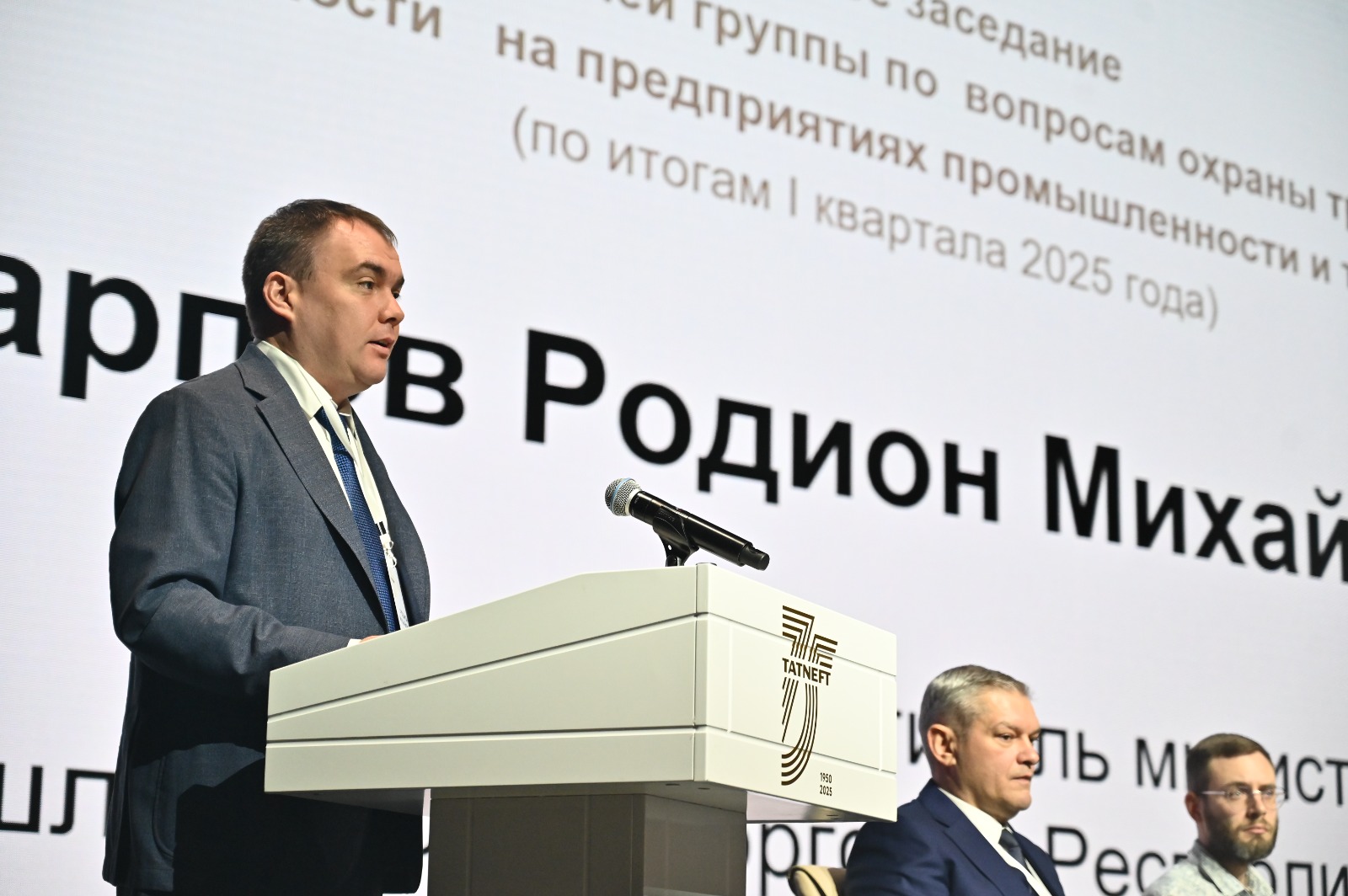 В Альметьевске состоялось заседание Межведомственной рабочей группы по вопросам охраны труда и техники безопасности на предприятиях промышленности и торговли Татарстана за 1 квартал 2025 года в рамках конференции по охране труда Татнефть-2025. Одним из спикеров стал первый замминистра промышленности и торговли Татарстана Родион Карпов.
