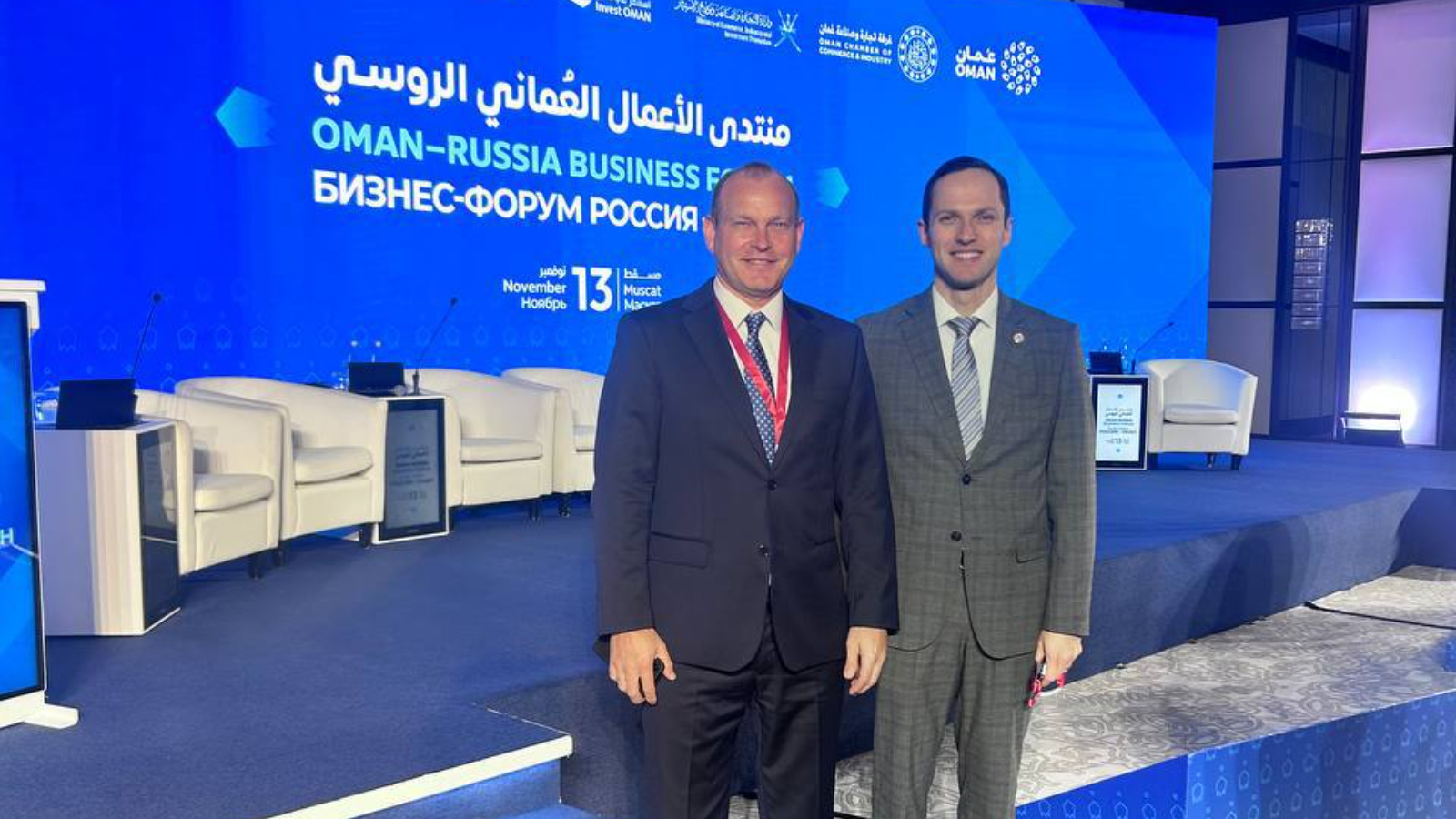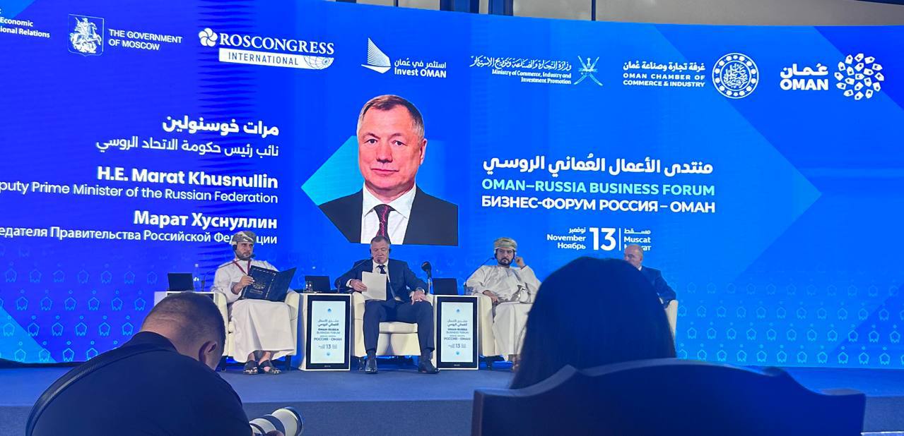Делегация приняла участие в пленарной сессии «Россия – Оман: взгляд в будущее, организатором которого является фонд «Росконгресс». На мероприятии выступил заместитель Председателя Правительства России Марат Хуснуллин.
