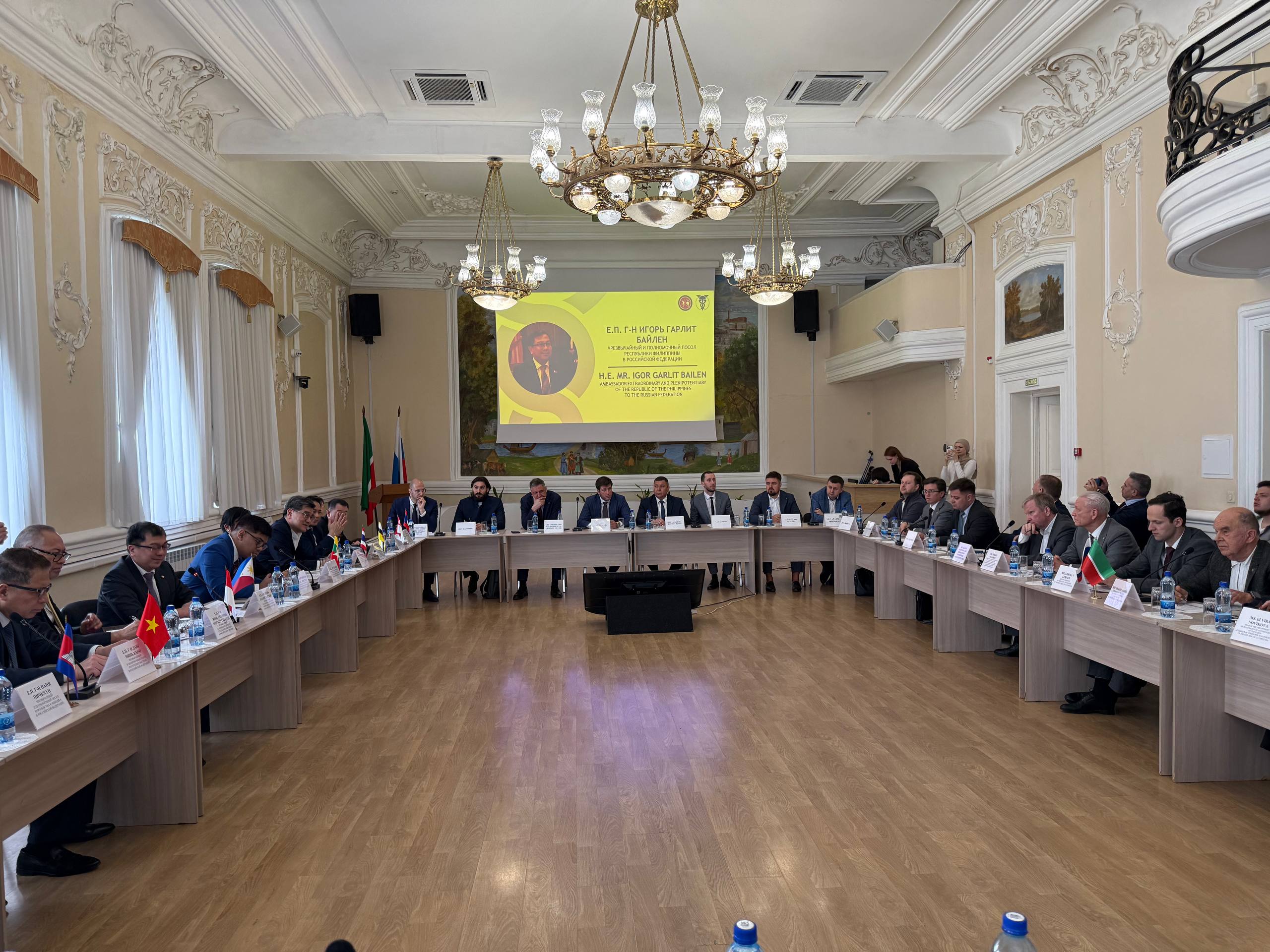 Кроме того, в Торгово-промышленной палате РТ прошел круглый стол с участием делегации дипломатических миссий иностранных государств в России и представителей бизнеса РТ, что позволило гостям сформировать более полное представление об экономическом потенциале республики.