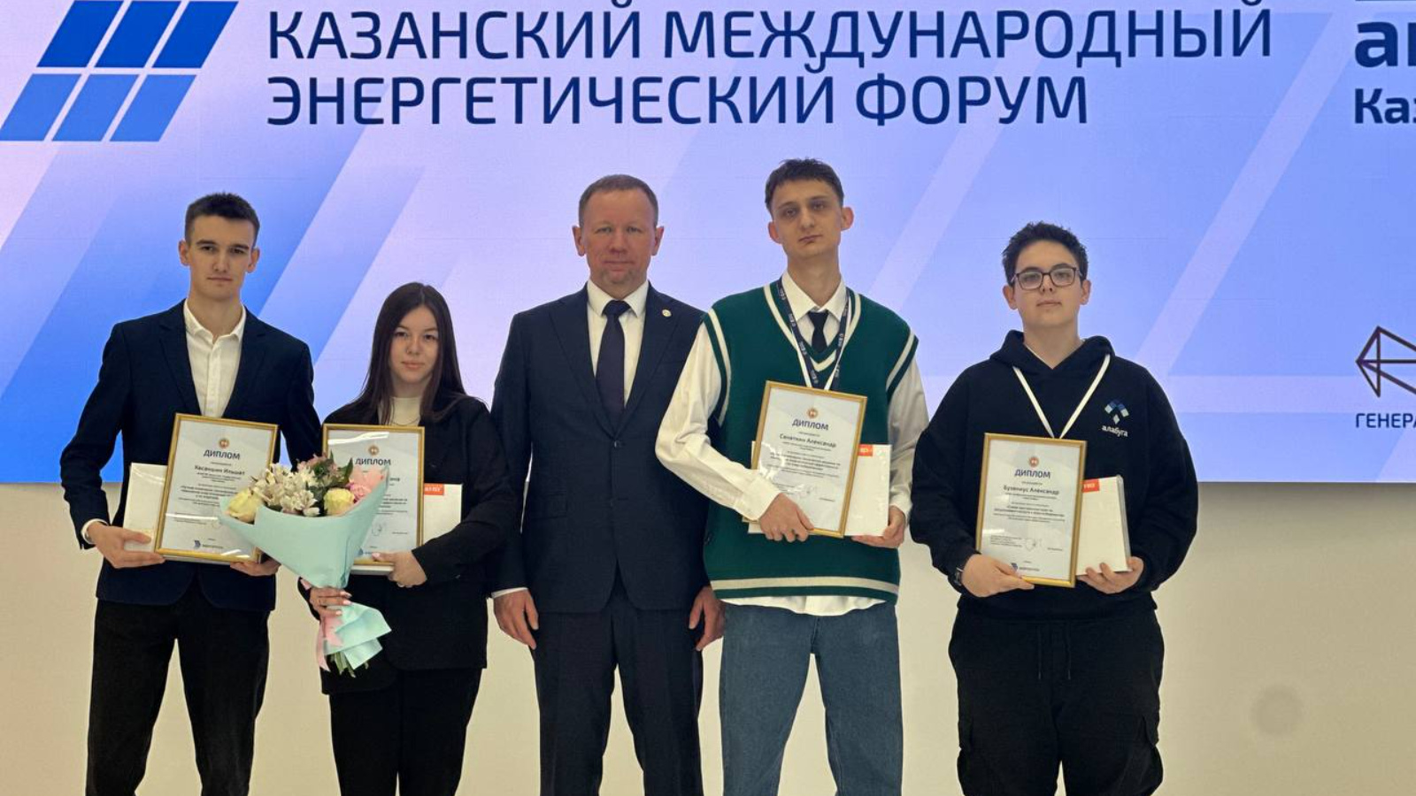 Бүген «ЭНЕРГОПРОМ» Казан халыкара энергетика форумында Татарстан сәнәгать һәм сәүдә министры урынбасары Марат Миңнебаев «Без энергия нәтиҗәлелеген сайлыйбыз» яшьләр инициативалары республика конкурсында җиңүчеләрне бүләкләде.